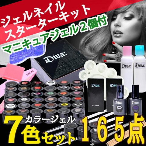 【最新型48WライトにアップグレードSALE】ジェルネイル キット【送料無料】ジェルネイルキット165点 LEDライト カラージェル7色!ジェルネイルキット マニキュア付き!のジェルネイル165点キット 【ジェルネイル キット】ならDiva!【あす楽対応】